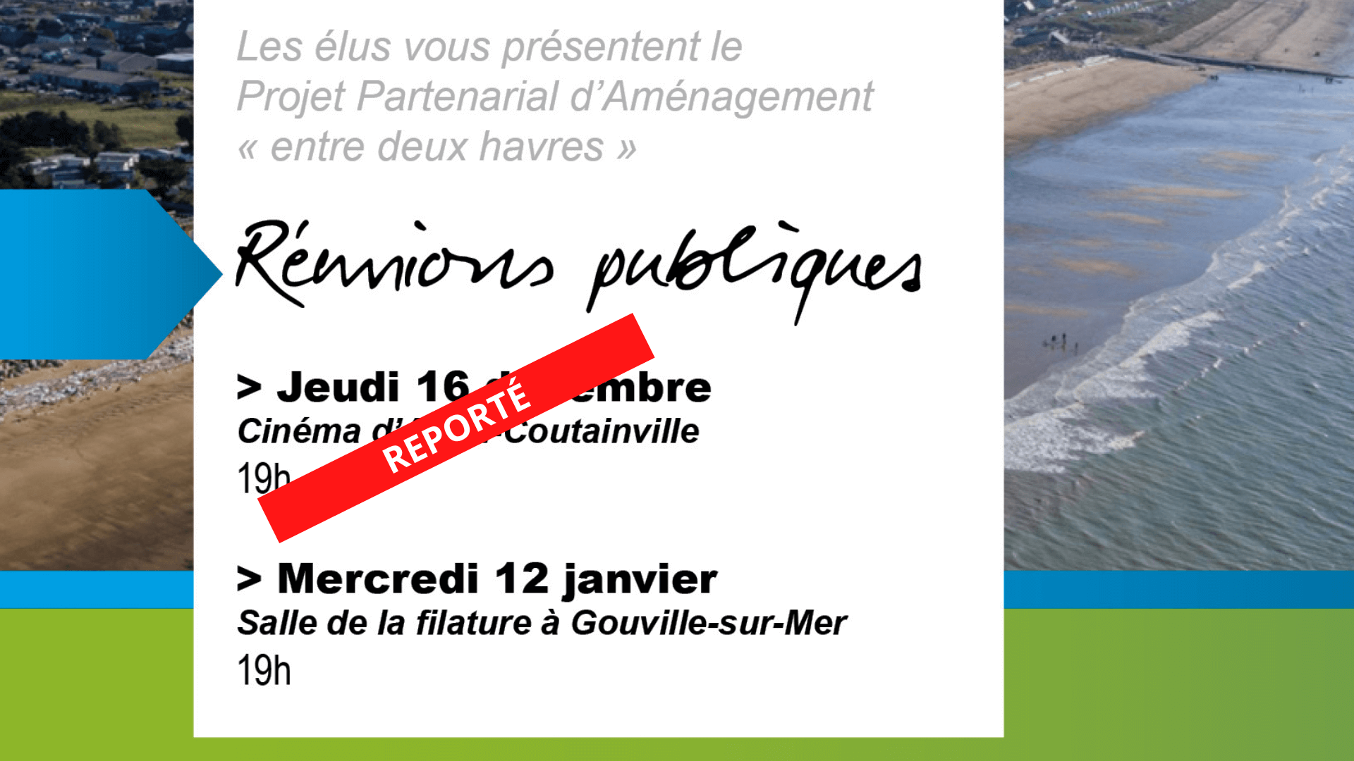 La réunion publique prévue initialement le jeudi 16 décembre à Agon-Coutainville est reportée.